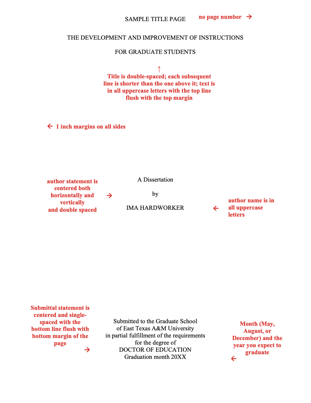 - Include a permanent address that will be good for two years. Because your thesis or dissertation will be available worldwide via the Internet, we recommend you use a professional address or the East Texas A&M department address.