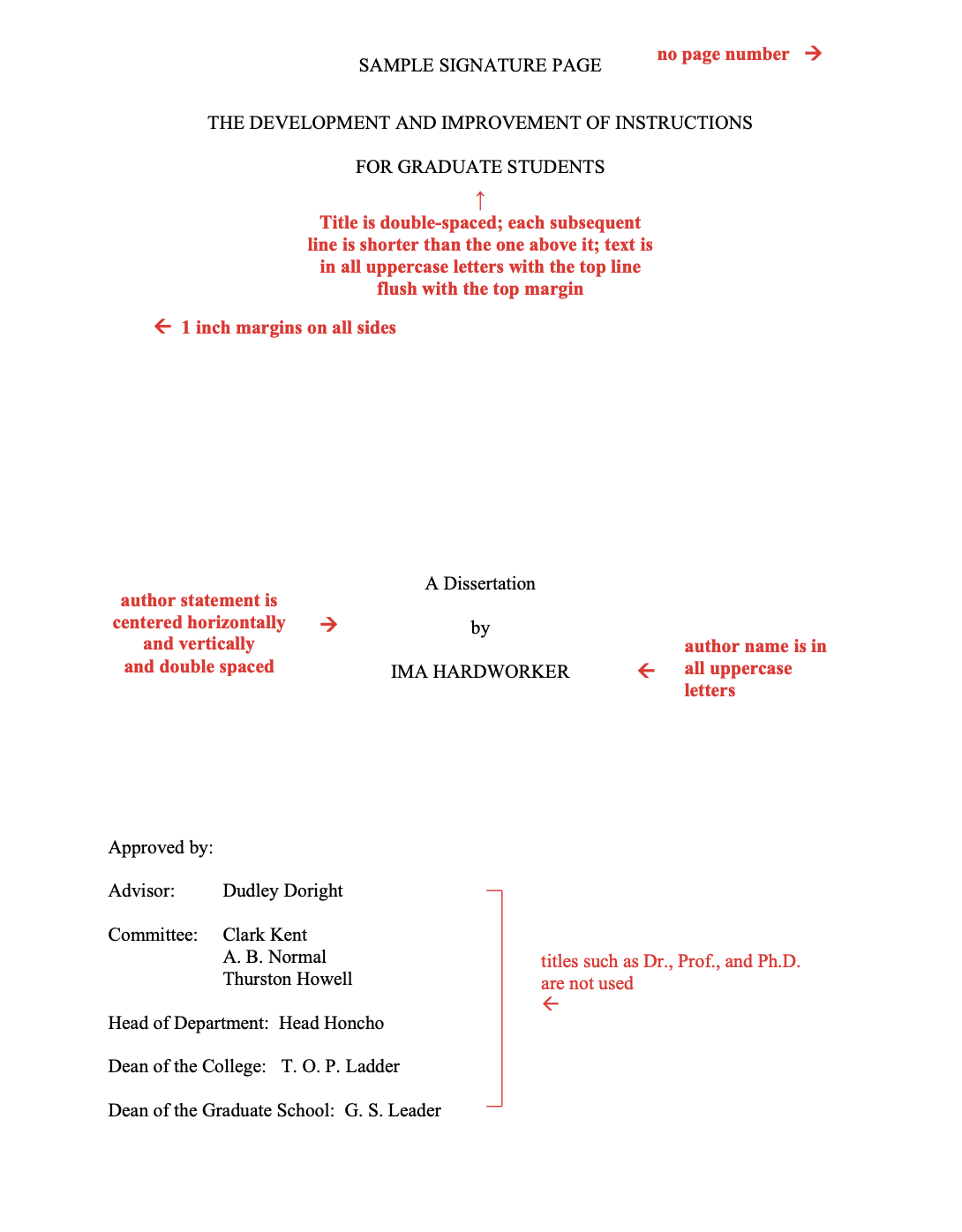 - TITLE of the thesis or dissertation on the Signature Page