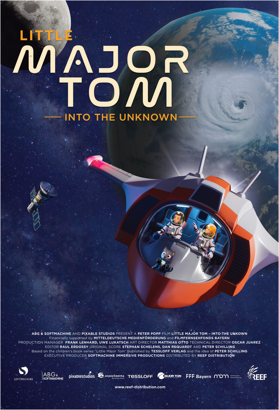 Little Major Tom — Into the Unknown brings the beloved characters of Tom and Stella exclusively to fulldome screens in an exciting tale set in the year 2053. Teenaged friends Tom and Stella live, laugh, and train at Space Base 1, honing their astronaut skills as they float above Earth. Stella is ready to dive into any challenge, while Tom is panicking at the thought of completing his first-ever spacewalk. But a massive hurricane is forming on Earth, and Tom must put aside his fears and accept a difficult space mission. If Tom and Stella fail, the consequences could be devastating for them — and for Earth.