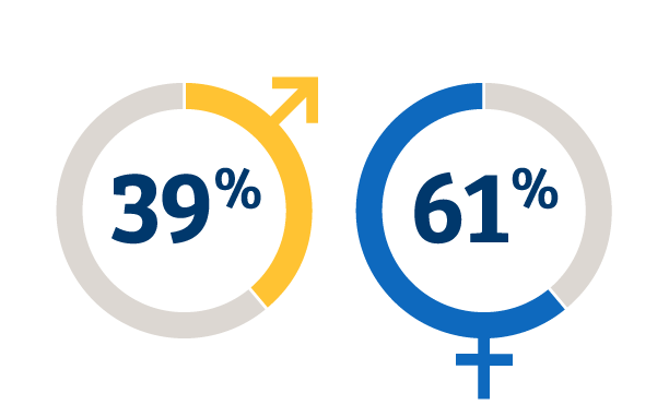 Male students represent 39% of the student body.